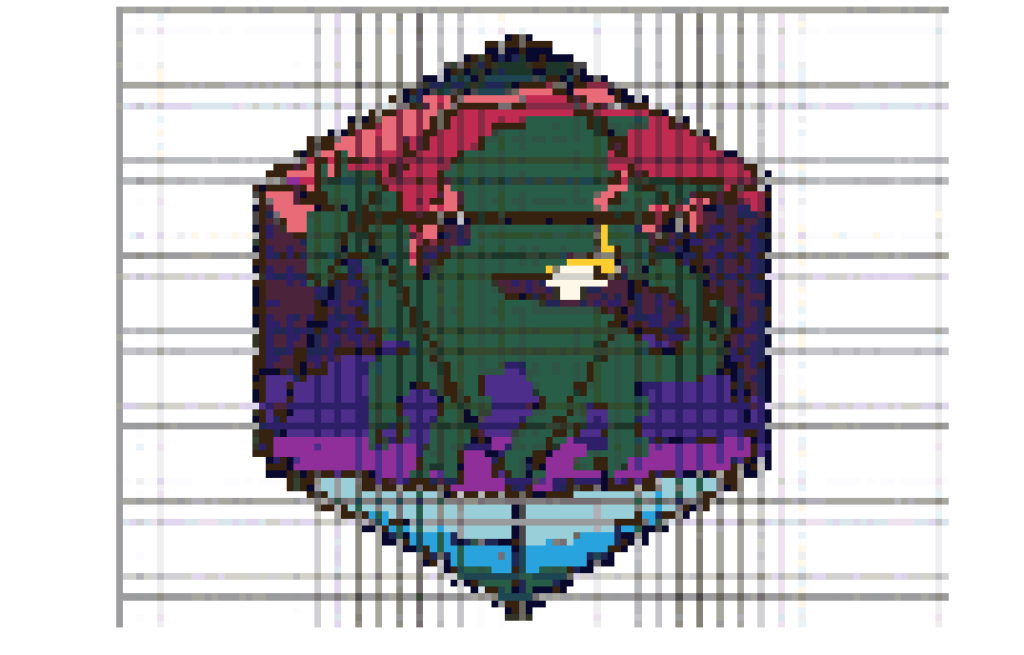 The problem with StitchFiddle (and most other software) is twofold. Threefold if you include the learning curve. The first problem is that the patterns I’d previously made, like the aforementioned dragon die, included grid lines so I could, you know, read them. Well, that made it really tough for computers to read them because unlike a human, the did not block out the grid lines. Nor did it ignore the white backgrounds. Which resulted in patterns that looked like this: